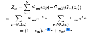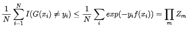 AdaBoost最基本的性质是它能在学习过程中不断减少训练误差,即在训练数据集上的分类误差率。