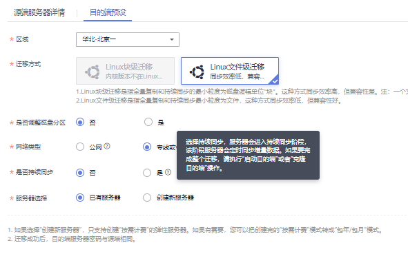 假如在迁移过程中我们源服务器还在应用中,还在持续产生新的数据,那这个时候我们就可以选择“持续同步”选项