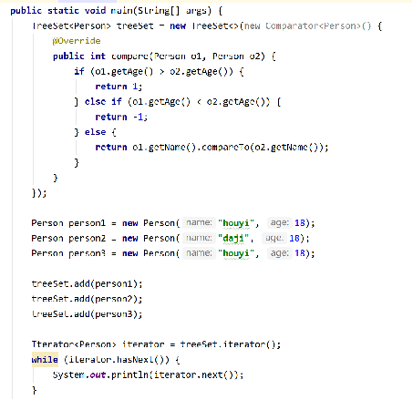 TreeSet判断两个对象不相等的方式是两个对象通过equals方法返回false,或者通过CompareTo方法比较没有返回0