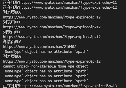 多次测试发现网站当判定我们是爬虫之后,会限制我们访问页面,但限制时间比较短,并且不会限制 IP,所以当页面出现异常情况时,通过 try except 重新访问页面,中间间隔一定时间,即代码存在如下结构: