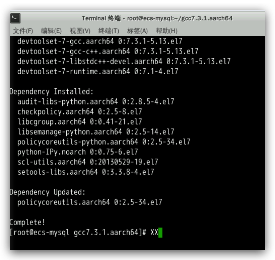 cd gcc7.3.1.aarch64; yum install -y devtoolset-7-runtime-7.1-4.el7.aarch64.rpm devtoolset-7-binutils-2.28-11.el7.aarch64.rpm devtoolset-7-gcc-7.3.1-5.13.el7.aarch64.rpm devtoolset-7-libstdc++-devel-7.3.1-5.13.el7.aarch64.rpm devtoolset-7-binutils-devel-2.28-11.el7.aarch64.rpm devtoolset-7-gcc-c++-7.3.1-5.13.el7.aarch64.rpms
