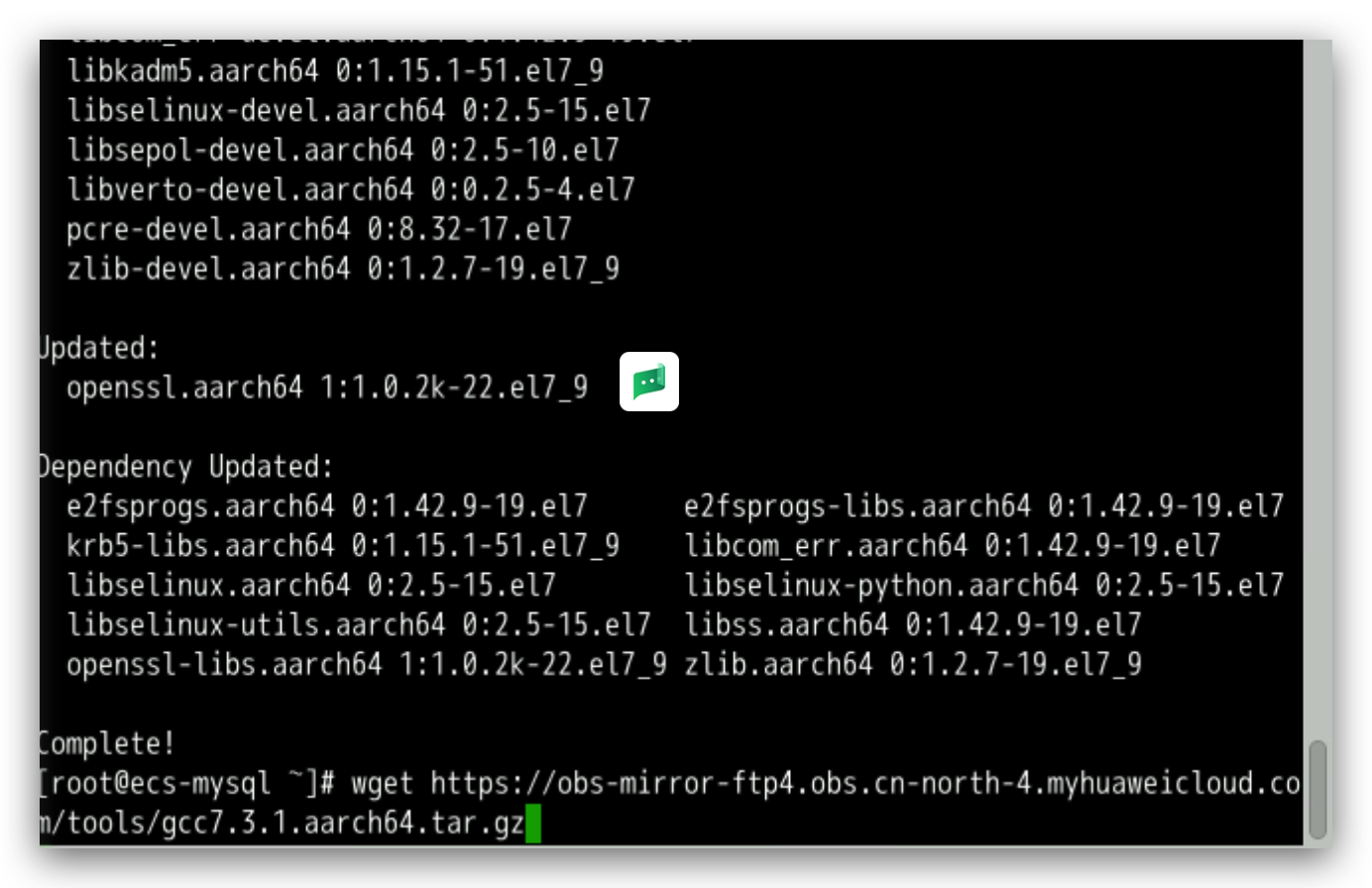wget https://obs-mirror-ftp4.obs.cn-north-4.myhuaweicloud.com/tools/gcc7.3.1.aarch64.tar.gz