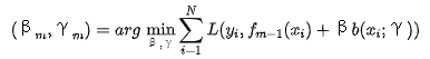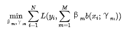 在给定训练数据及损失函数L(y,f(x))的条件下,学习加法模型f(x)成为经验风险极小化即损失函数极小化问题: