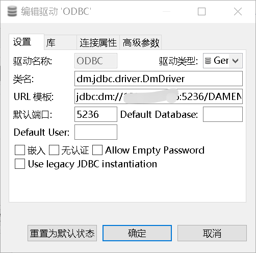 URL :jdbc:dm://IP:5236/DAMENG