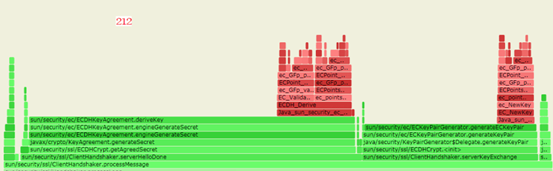 processMessage()主要是通过不同的信息类型进行不同的握手消息的处理。而在火焰图中可以看到,74图中,主要消耗在serverFinished()和serverHello()上,而202主要消耗在serverHelloDone()和serverKeyExchange()。