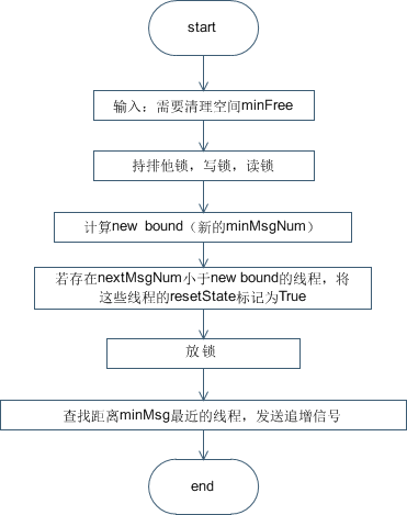 NOTE:清理共享消息队列过程,实际上是推进minMsgNum的过程,同时对所有没有及时追增失效消息的线程执行全失效。