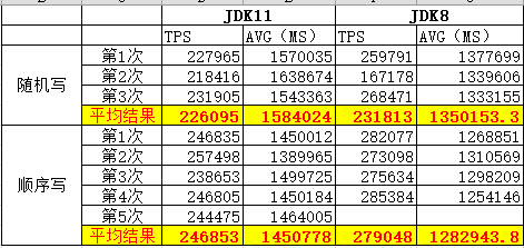 结论:使用G1 GC,JDK11相对于JDK8来说性能明显下降。