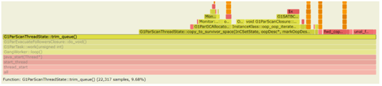 结论:虽然G1ParEvacuateFollowersClosure::do_void()是性能下降的触发点,但是此处并不是问题的根因,应该是其他的原因造成了该函数调用次数增加或者耗时增加。