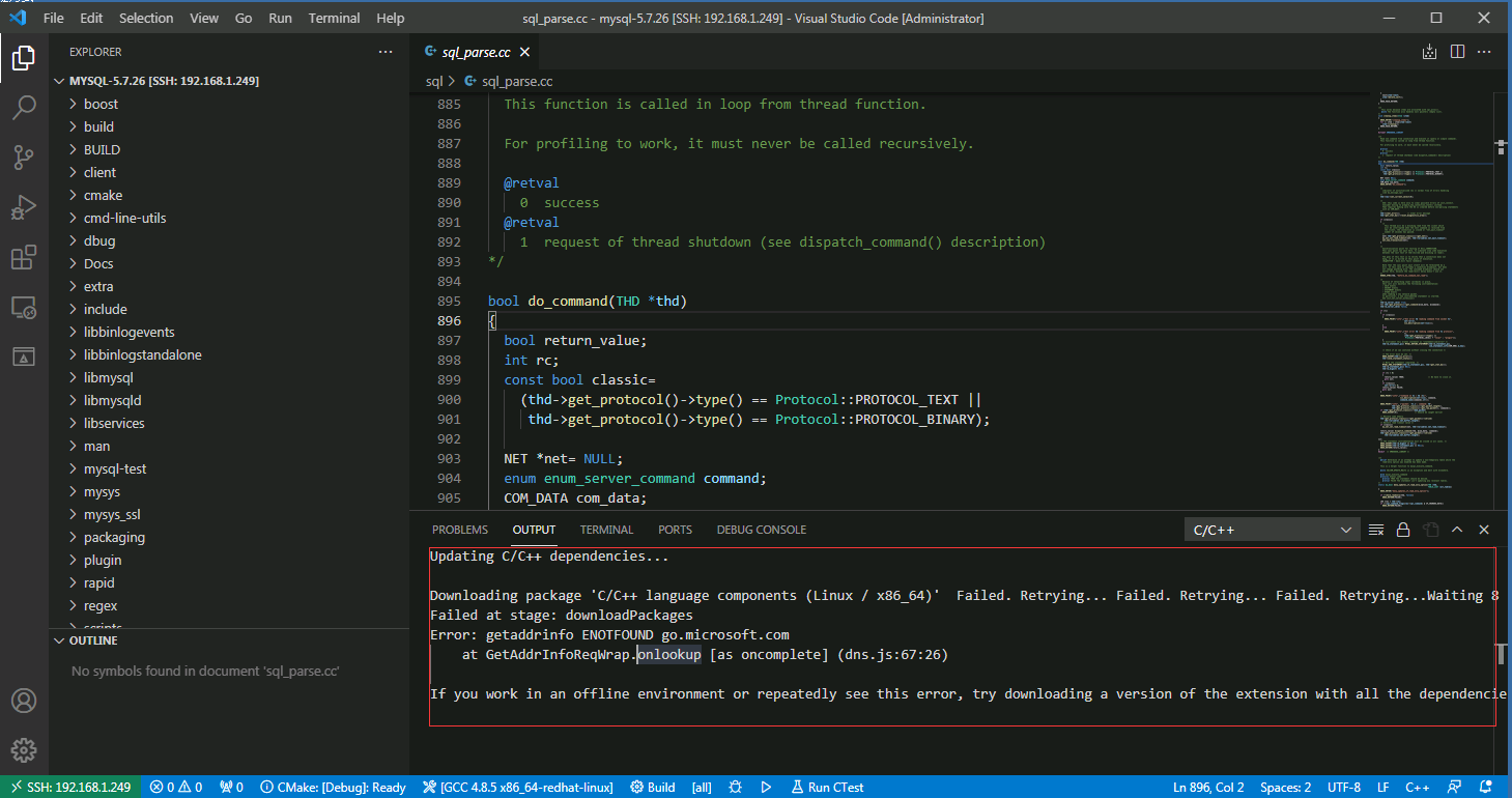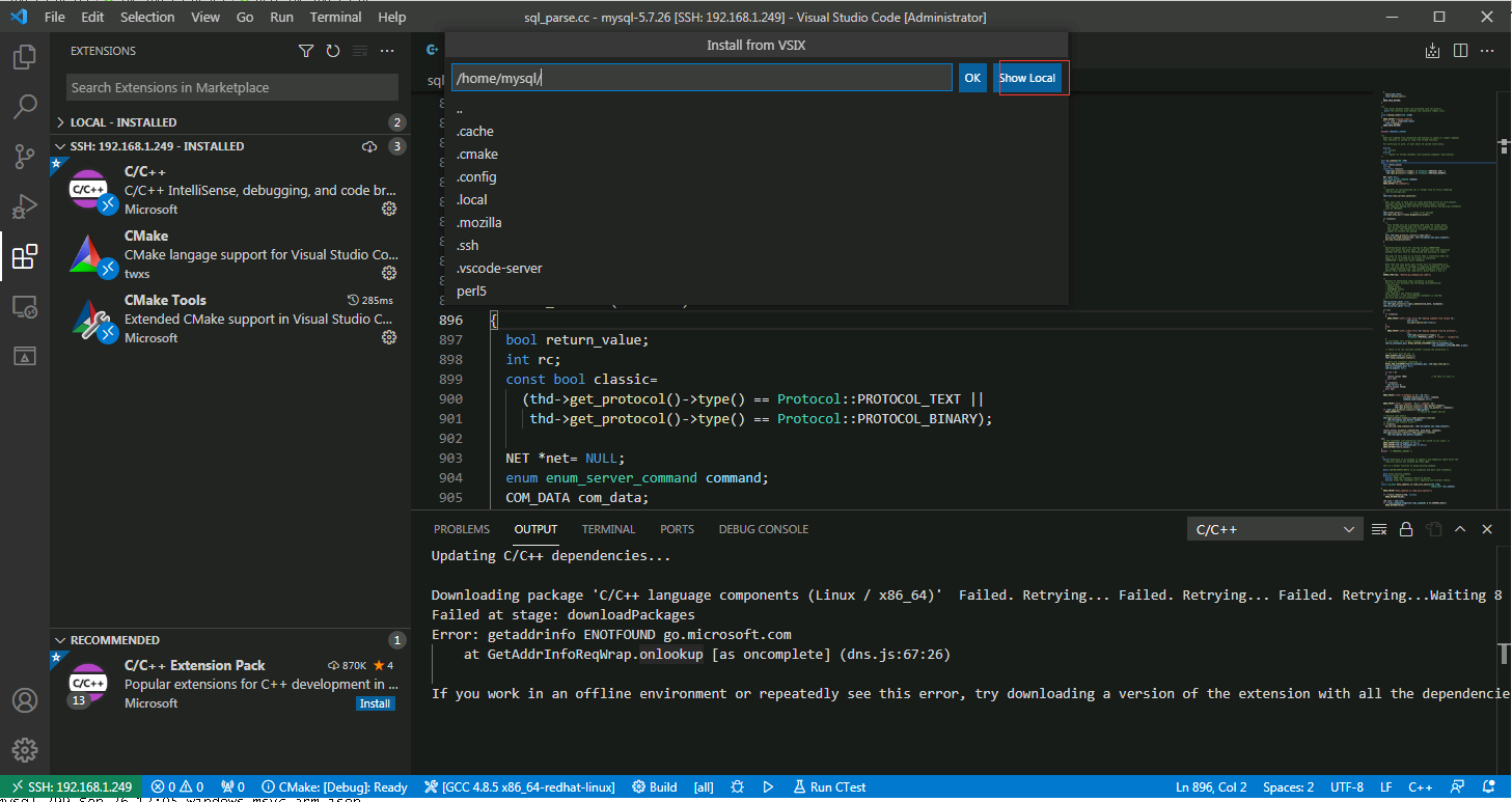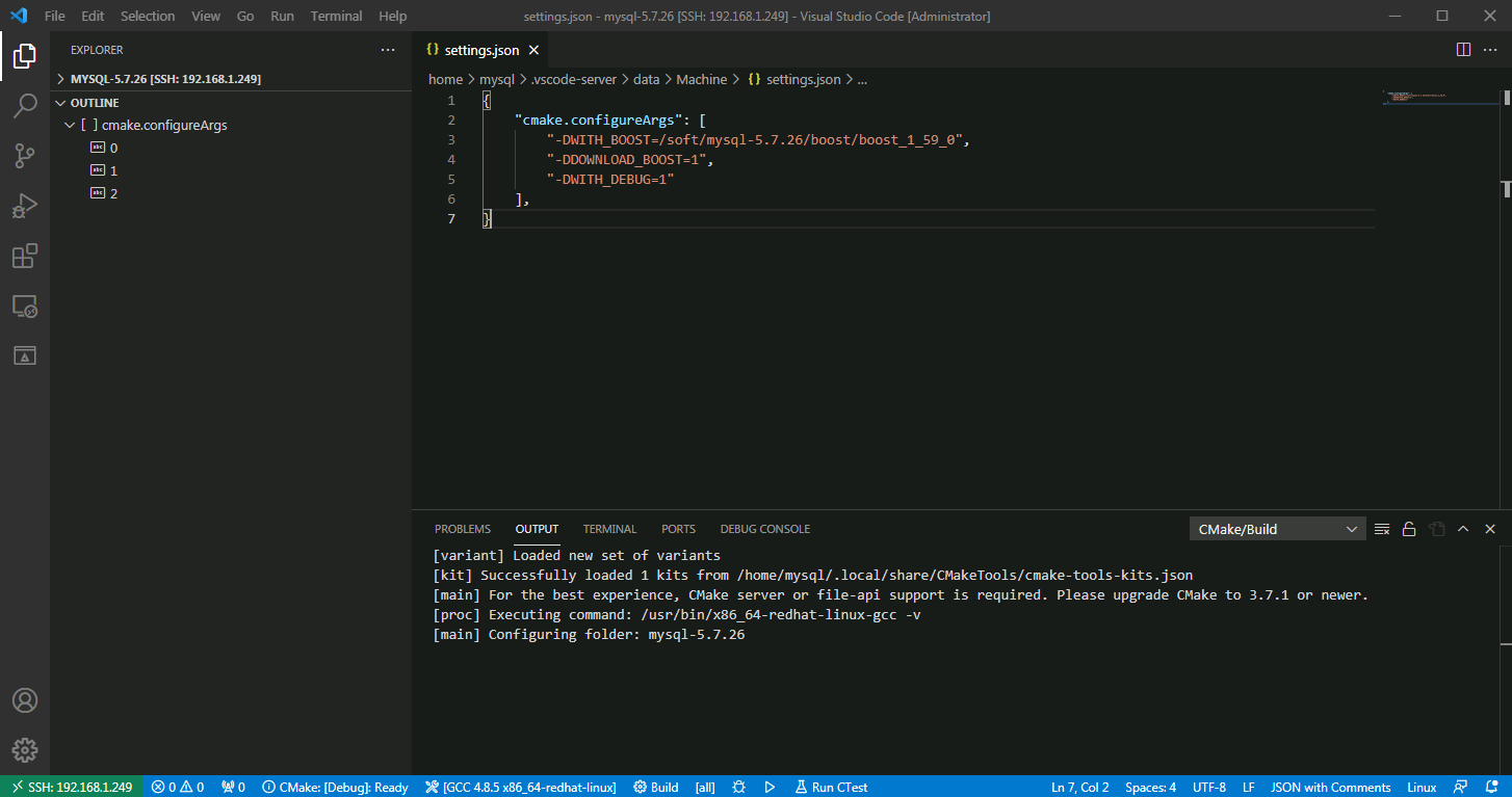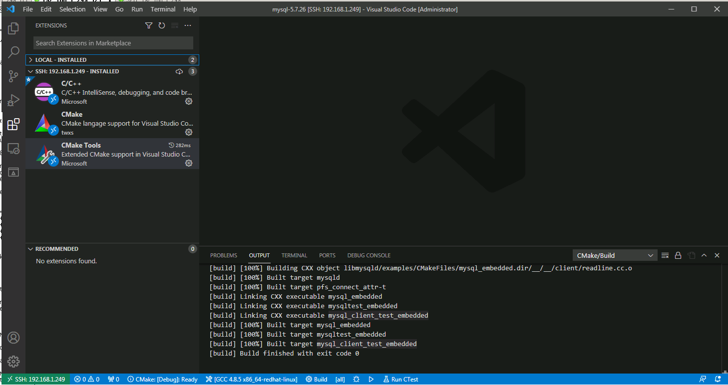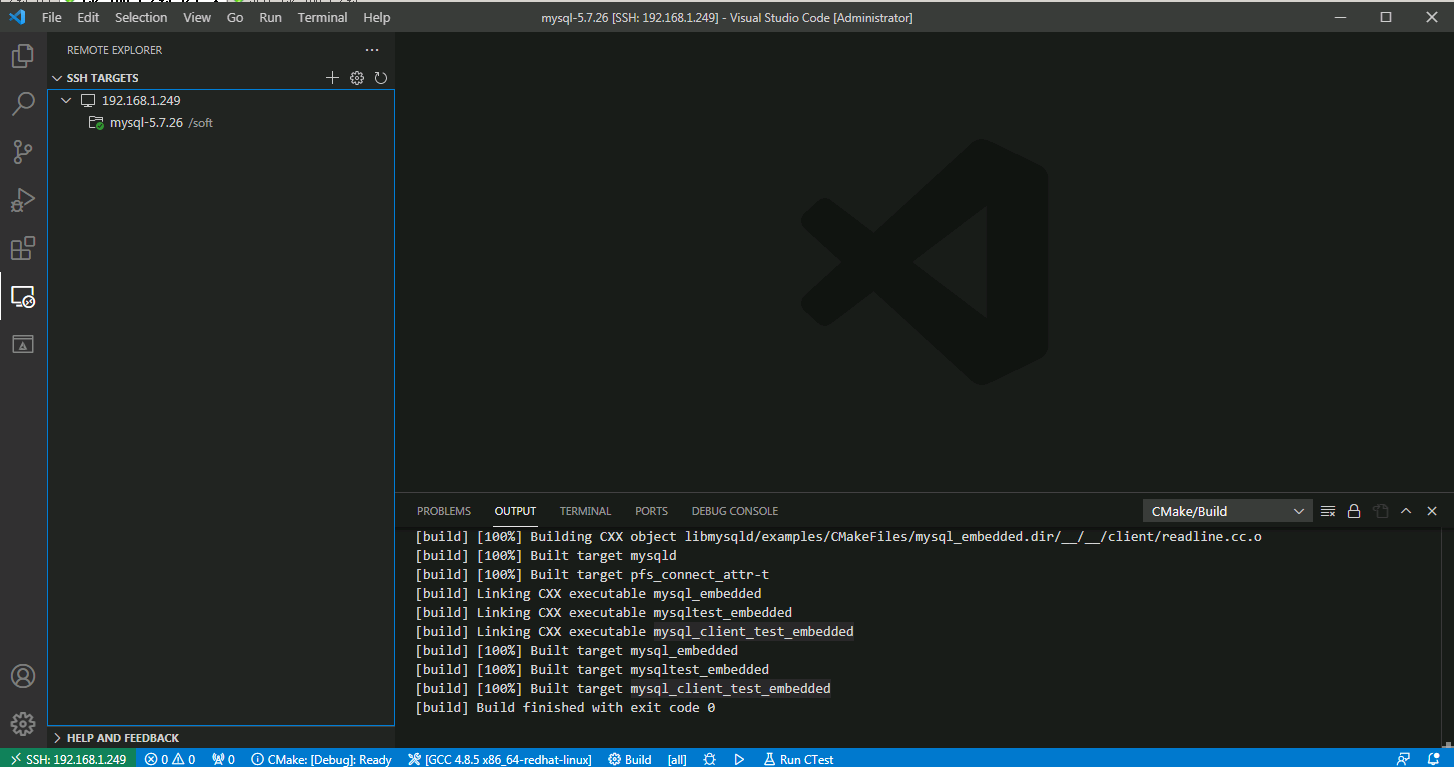 4.使用vscode远程编译Linux服务器的MySQL源码,mysql源码在/soft/mysql-5.7.26/目录