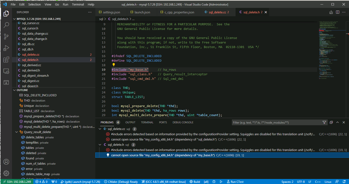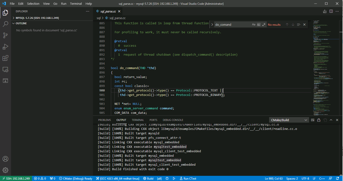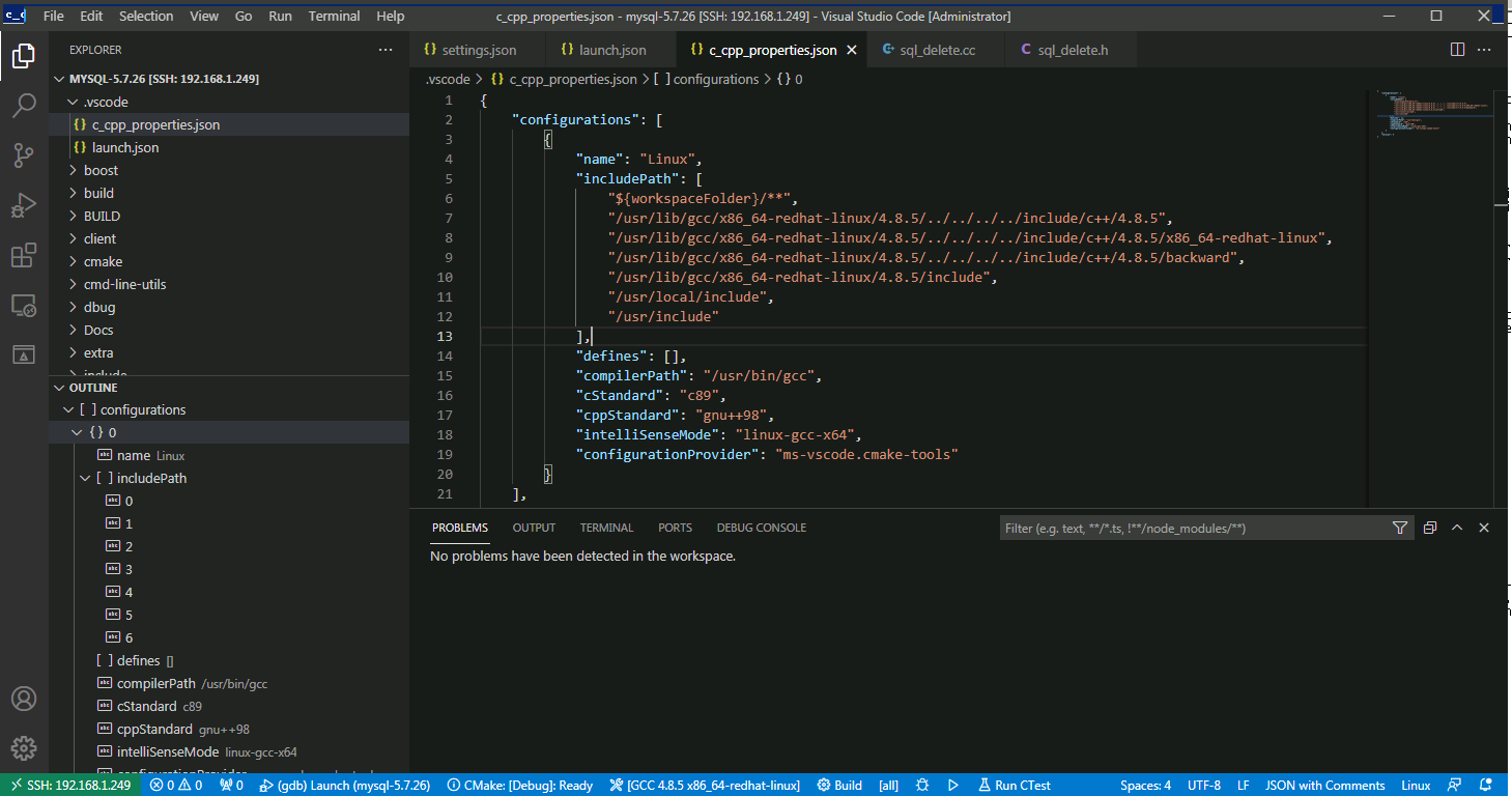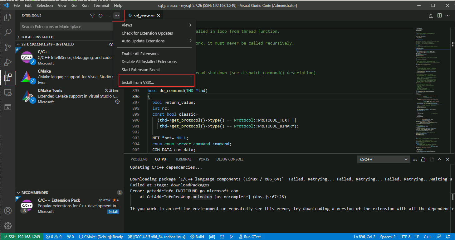 4.使用vscode远程编译Linux服务器的MySQL源码,mysql源码在/soft/mysql-5.7.26/目录