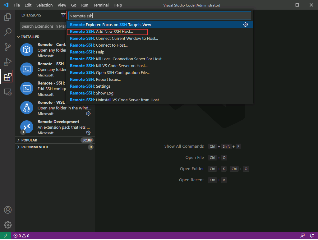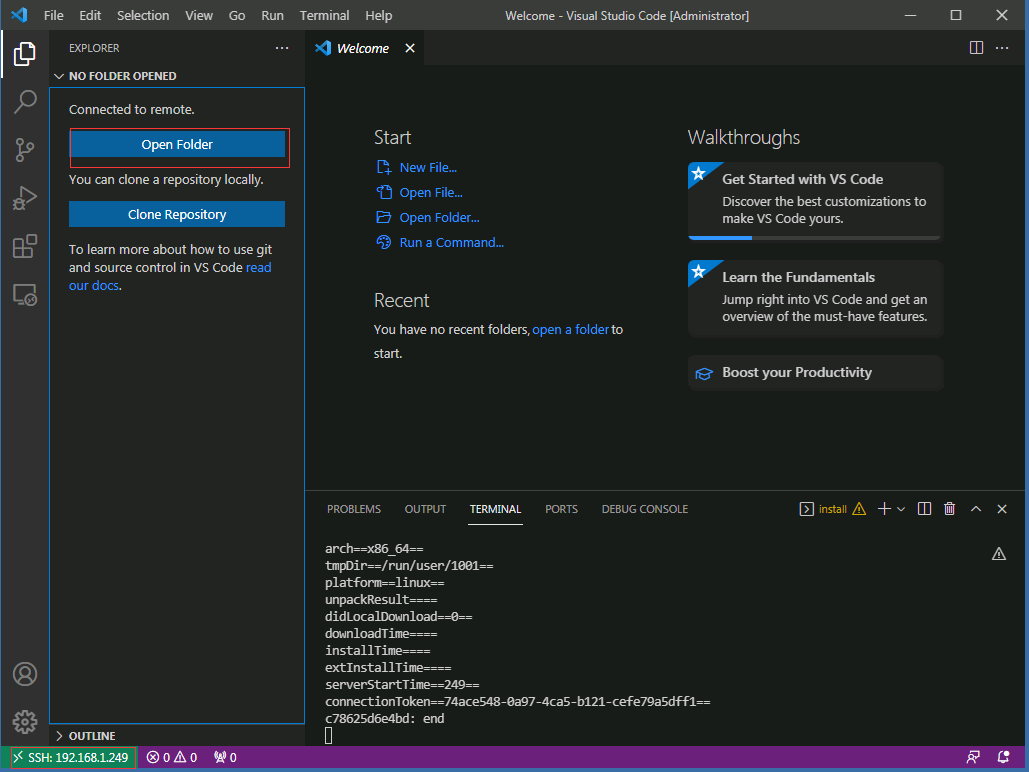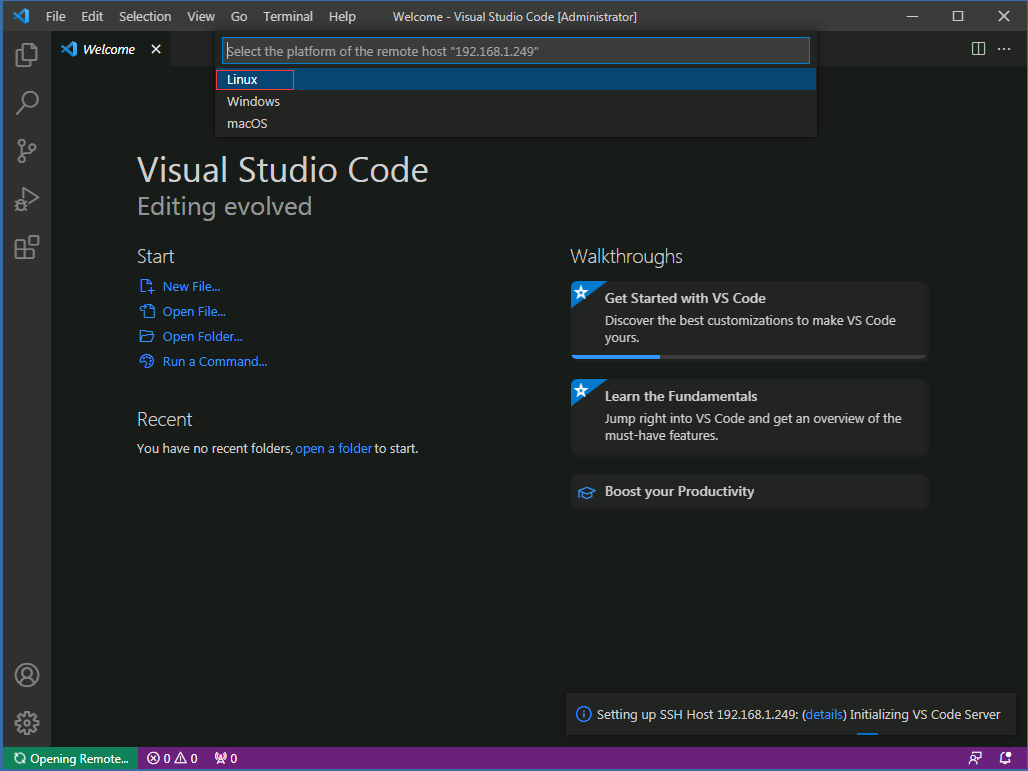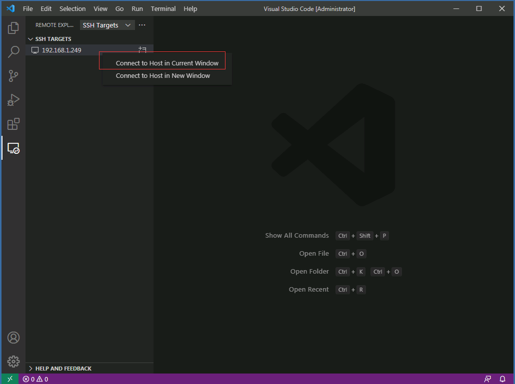 在 VSCode 主界面 ctrl+shift+p 选 Remote.SSH: Connect to host, 输入 root@<ip>
