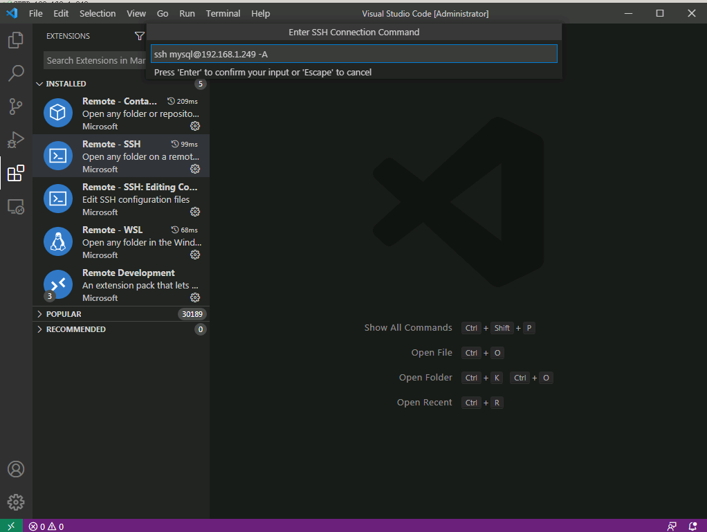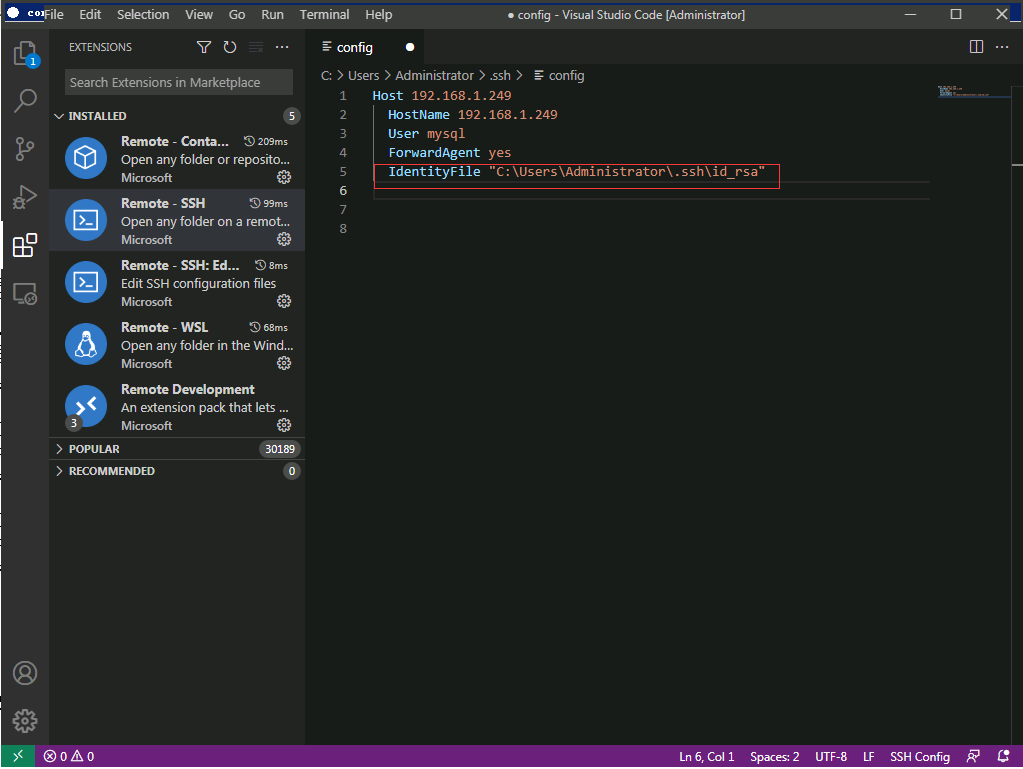 C:\Users\Administrator>scp C:\Users\Administrator\.ssh\id_rsa.pud mysql@192.168.1.249:/home/mysql/.ssh/authorized_keys