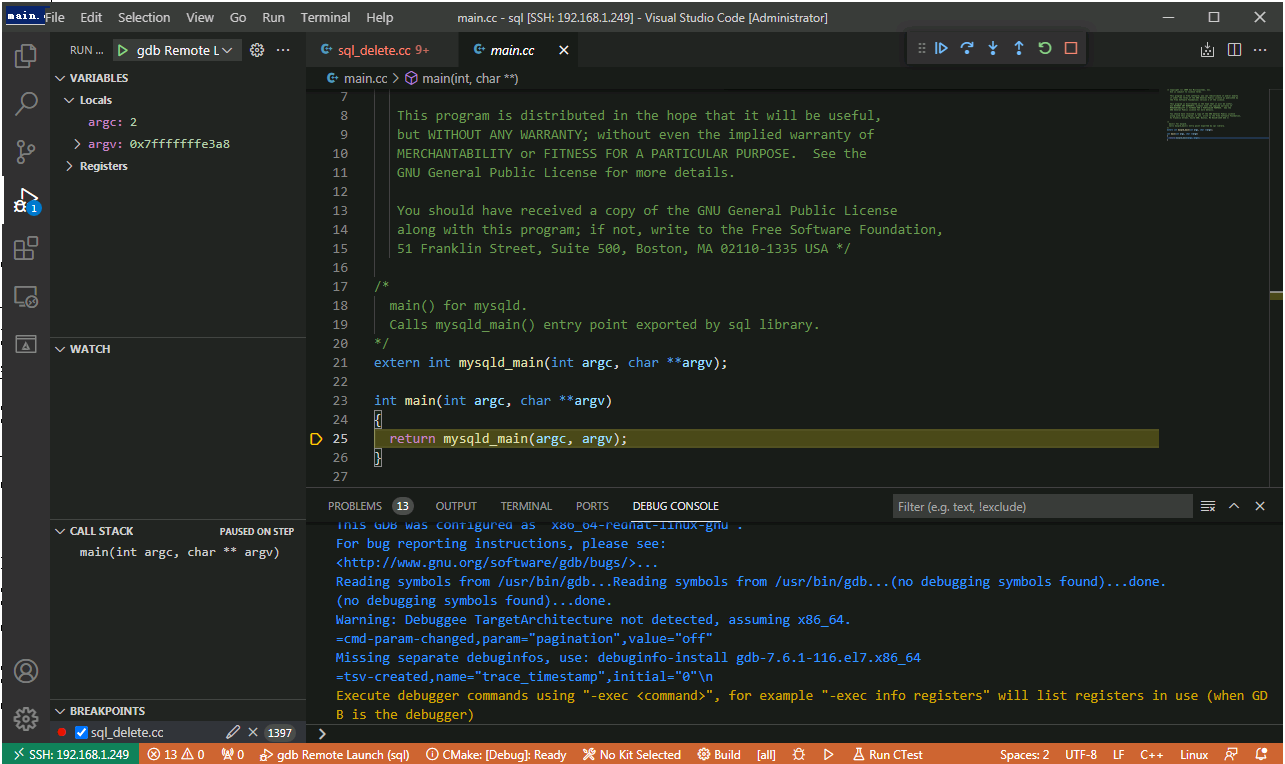 使用 VSCode 和 gdbserver 远程调试 mysql 代码