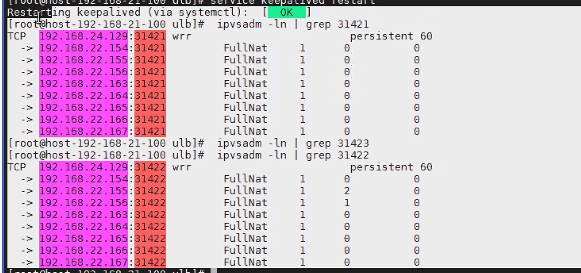 虚拟机上面查看regionLB-01、regionLB-02的/etc/keepalived/keepalived.conf缺少31422、31421