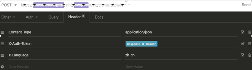 3.环境配置好后新建请求,可以通过F12抓包获得参数,填写url,请求头,请求体参数,获取token