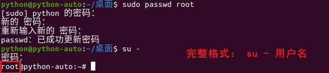 sudo passwd root # 3 切换到root用户