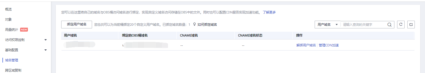 很多时候我们想用平台自己的域名进行对象的访问,此时可以用域名管理功能来实现