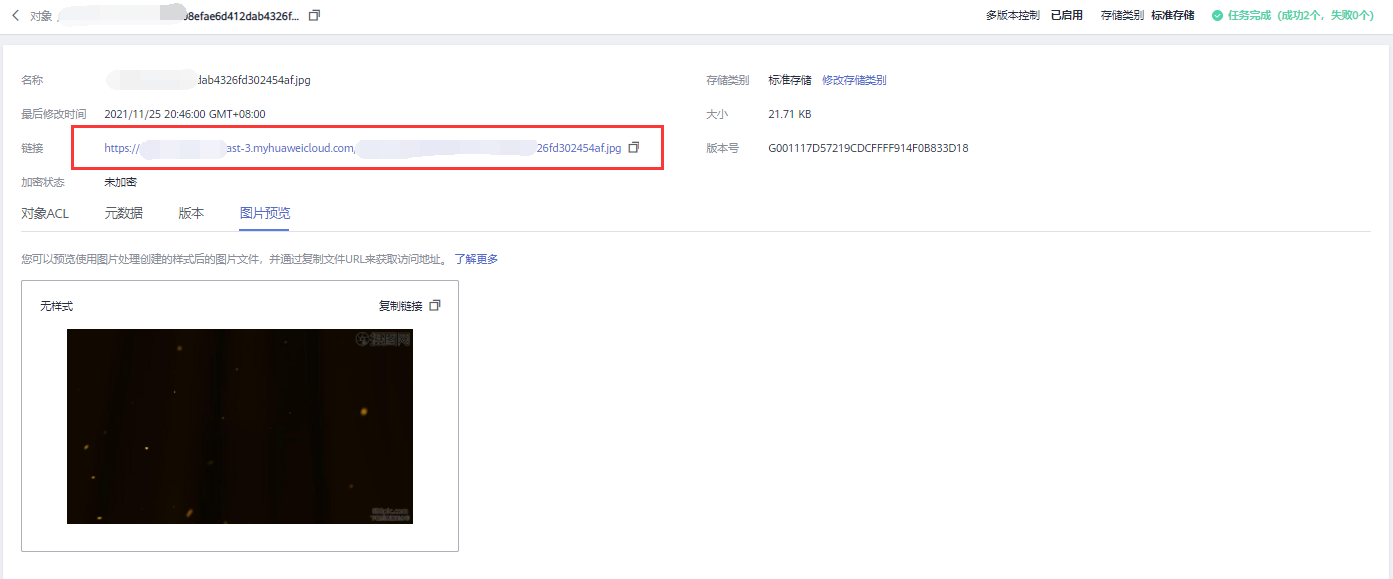 华为云OBS目前新建桶中图片预览链接在浏览器中打开时无法预览,而是会跳出下载框,只能下载后查看,这个对于调试或测试来说就显得不是特别友好了。个人记得以前的版本是没有问题的,可以直接打开预览。