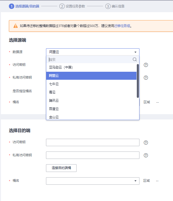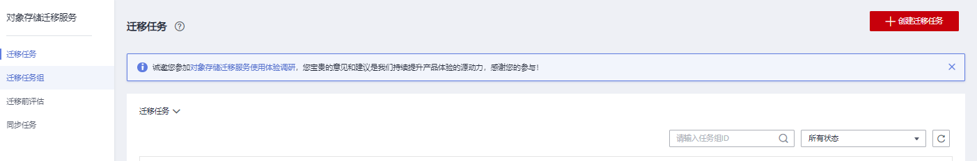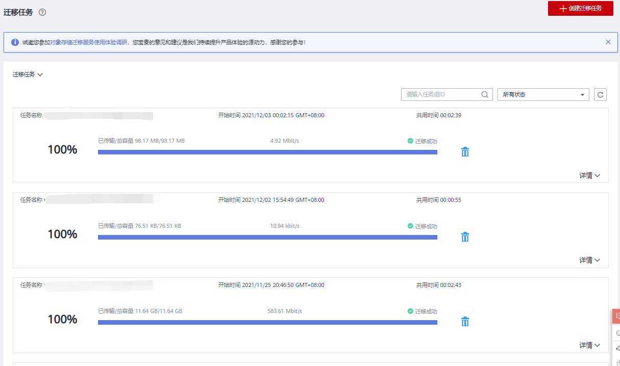 点击创建迁移任务,配置好相应的源端和目的端信息,即可开启迁移任务