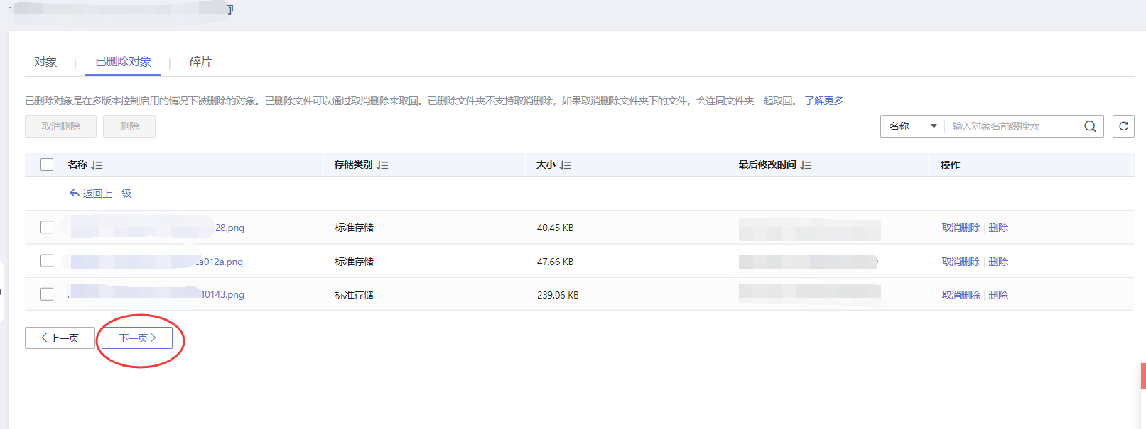 【产品缺陷】对象存储中已删除对象显示不全,分页有问题,建议改善