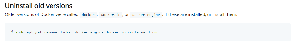 sudo apt-get remove docker docker-engine docker.io containerd runc