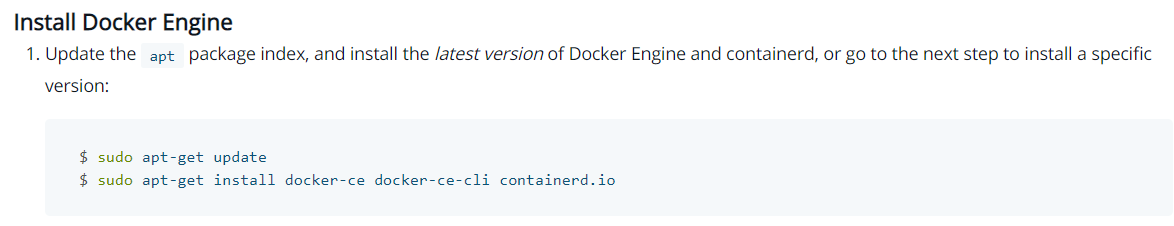 sudo apt-get install docker-ce docker-ce-cli containerd.io