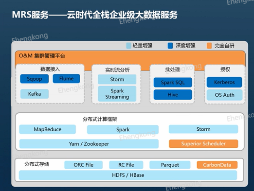 针对上述问题,华为云提供了大数据MapReduce服务(MRS),MRS是一个在华为云上部署和管理Hadoop系统的服务,一键即可部署Hadoop集群。MRS提供租户完全可控的一站式企业级大数据集群云服务,完全兼容开源接口,结合华为云计算、存储优势及大数据行业经验,为客户提供高性能、低成本、灵活易用的全栈大数据平台,轻松运行Hadoop、Spark、HBase、Kafka、Storm等大数据组件,并具备在后续根据业务需要进行定制开发的能力,帮助企业快速构建海量数据信息处理系统,并通过对海量信息数据实时与非实时的分析挖掘,发现全新价值点和企业商机。