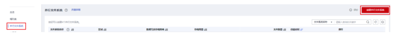 3.单击“并行文件系统>创建并行文件系统”,创建一个名称为obs-demo-analysis-hwt4 的文件系统。存储类别和桶策略等参数分别保持默认值。
