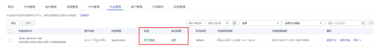 步骤1进入“作业管理”页面,查看作业执行状态。