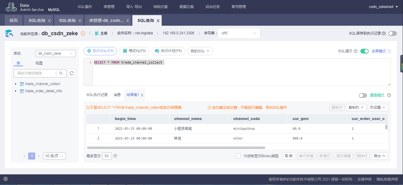 数据库查看结果