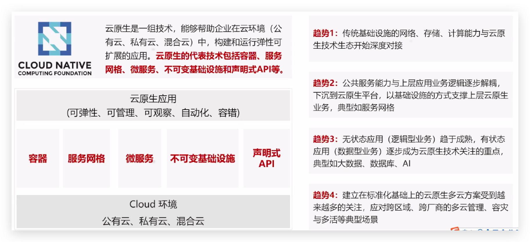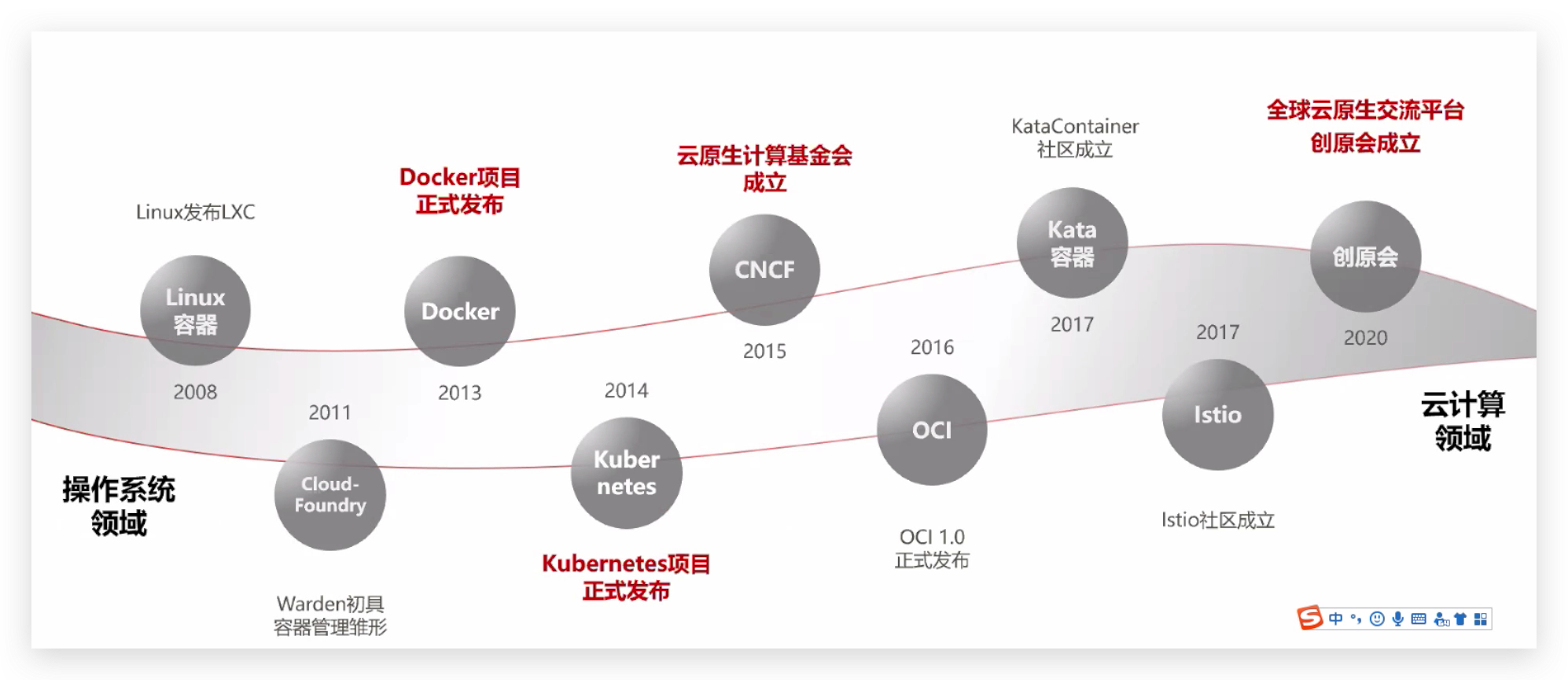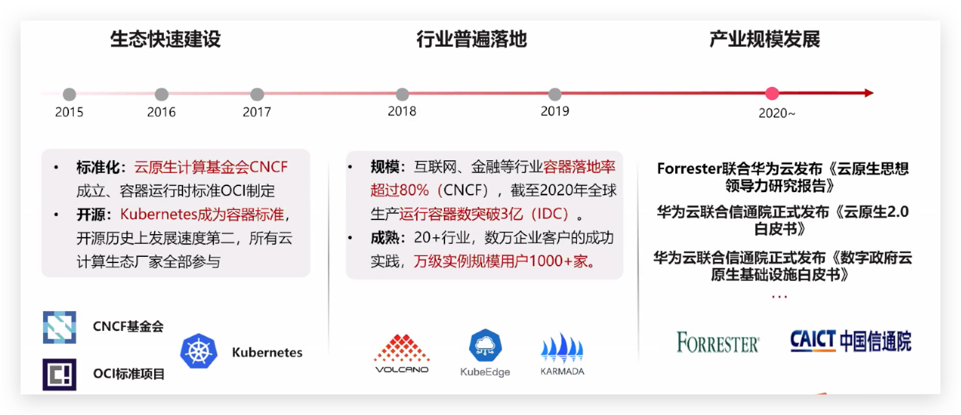 • 标准化:云原生计算基金会CNCF成立、容器运行时标准OCI制定