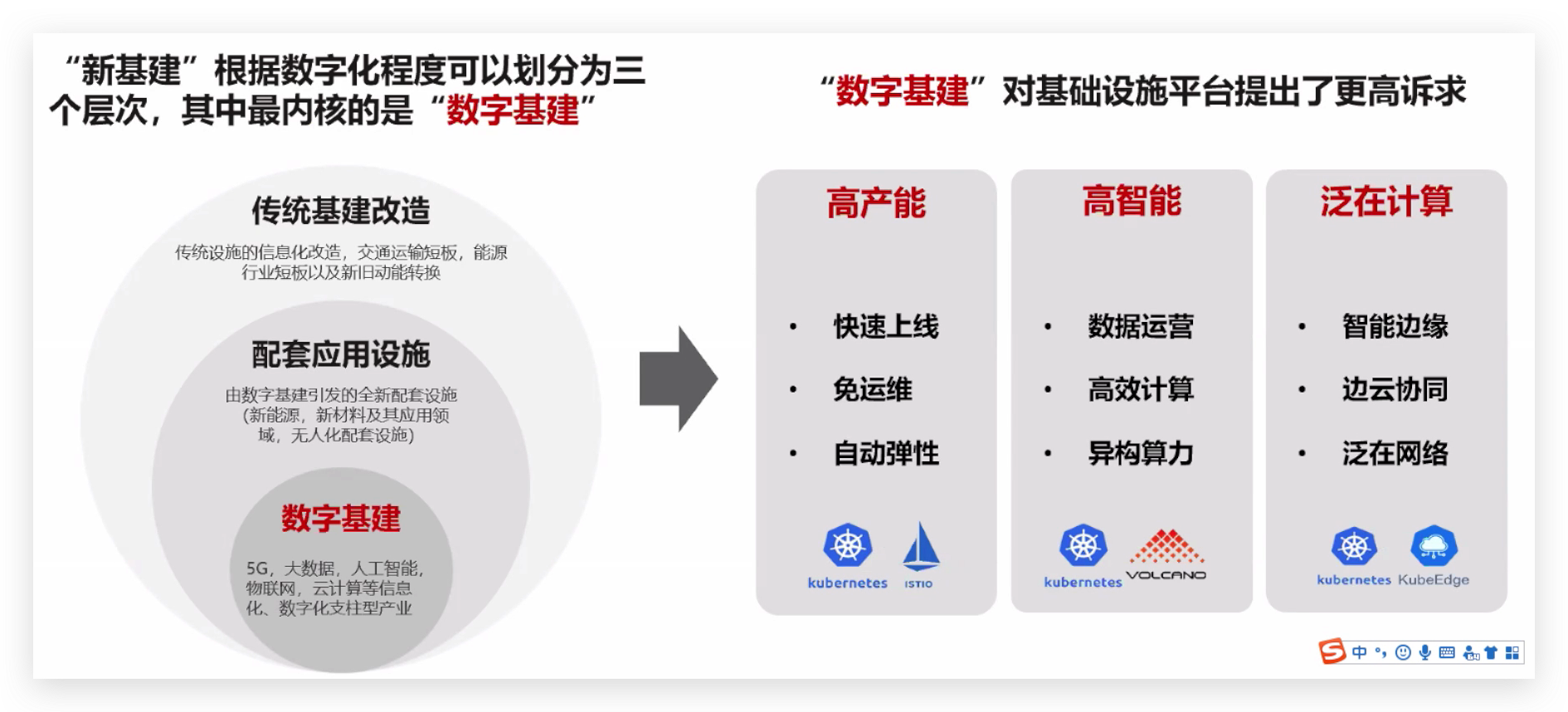 云原生基础设施标准话的接口,通用的平台层次。资源高效,业务智能,赋能产业智能升级,安全可信。