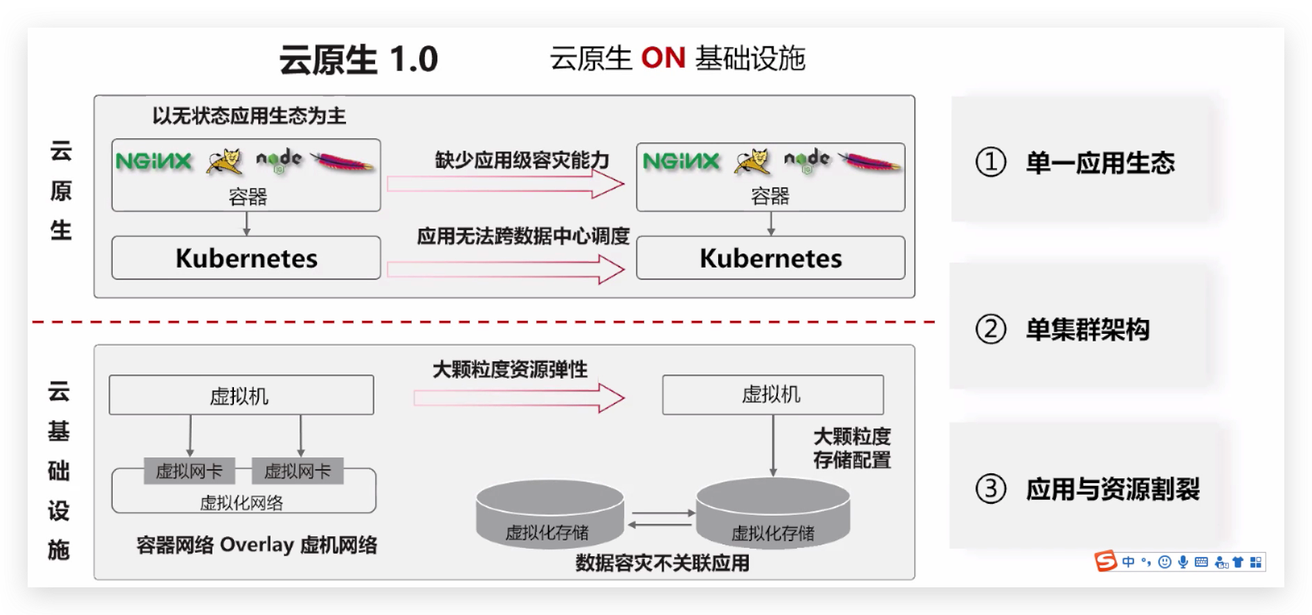 但是在云原生1.0中,业务场景也面临着巨大的挑战,单一应用生态,单集群架构,应用与资源割裂。
