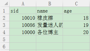 w.writerow({'sid': '10010', 'name': '橡皮擦', 'age': 18})