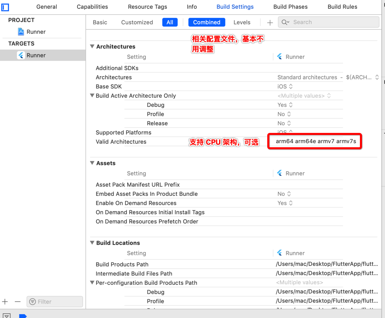 2.5 Build Settings 中相关配置文件,包括 CPU 架构等,但基本都不用做调整;