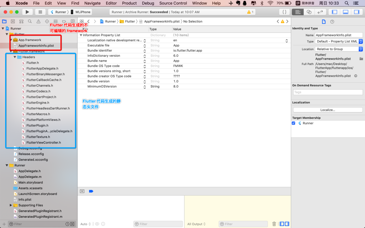 2.1 Runner->Flutter 中包含生成的不可编辑的 framework 代码与头文件等