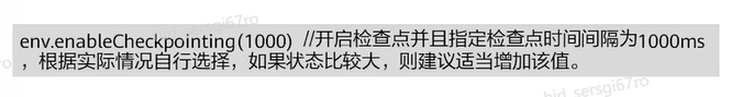 默认情况下Flink不开启检查点,用户需要在程序中通过调用enableCheckpointing(n)方法配置和开启检查点,其中n为检查点执行的时间间隔,单位为毫秒。