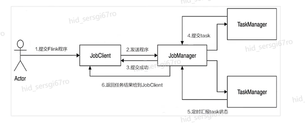 用户首先提交Flink程序到JobClient,经过JobClient的处理、解析、优化提交到JobManager,最后由TaskManager运行task。
