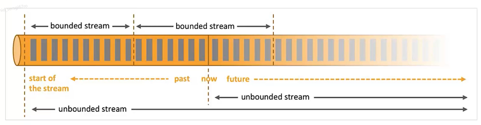 有界流:有定义流的开始,也有定义流的结束。有界流可以在读取所有数据后再进行计算。有界流所有数据可以被排序,所以并不需要有序摄取。有界流处理通常被称为批处理。