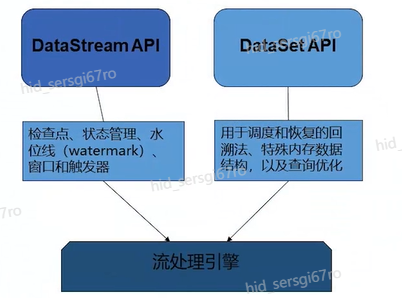 两套机制分别对应各自的API(DataStream API 和 DataSet API);在创建 Flink 作业时,并不能通过将两者混合在一起来同时 利用 Flink 的所有功能。