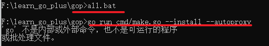 下载完毕,按照官方指导进入 gop 目录,执行 all.bat 文件,但是错误出现了,提示没有 go。