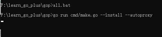 再次进入 go+ 的源码目录,执行 all.bat 文件,然后出现下图所示内容,等着即可。