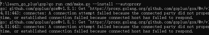 如果出现下述链接异常,先在控制台执行 go env -w GOPROXY=https://goproxy.cn,direct ,然后再次执行 all.bat 即可成功。