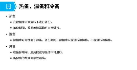 对象管理就是使用对象定义语言或者工具创建,修改或删除各种数据库对象的管理过程,包括制定数据库对象命名规范,备份恢复管理根据备份的数据集合的范围分为全量备份、差异备份、增量备份,根据是否停用数据库分为热备、温备、冷备,根据备份内容物理备份、逻辑备份等。