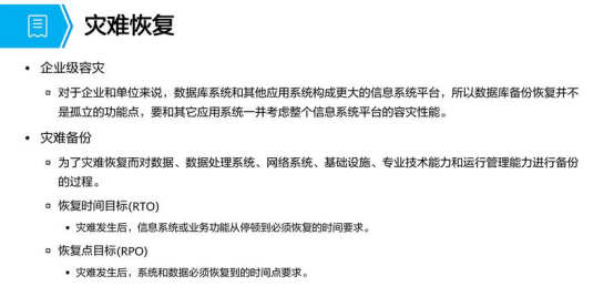 对于企业和单位来说,数据库系统和其他应用系统构成更大的信息系统平台,所以数据库本非恢复并不是鼓励的功能点,要和其他应用系统一并考虑整个信息系统平台的容灾性能。