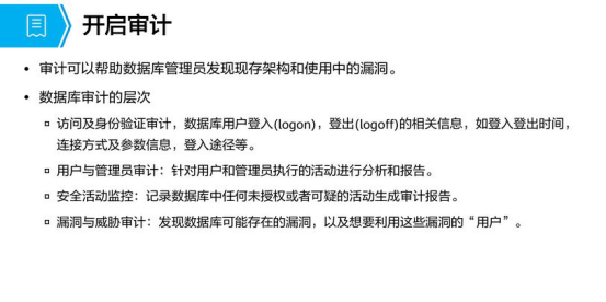 审计可以帮助数据库管理员发现县村架构和使用者的漏洞。