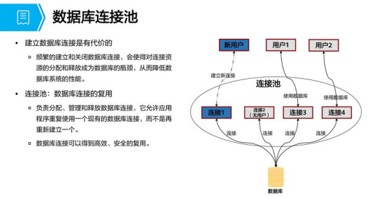 连接池是数据库连接的复用,负责分配,管理和释放数据库连接,它允许应用程序重复使用一个现有的数据库连接,而不是再重新建立一个。