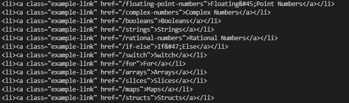 pattern := `<li><a class="example-link" href="\/(.*?)">(.*?)</a></li>`
