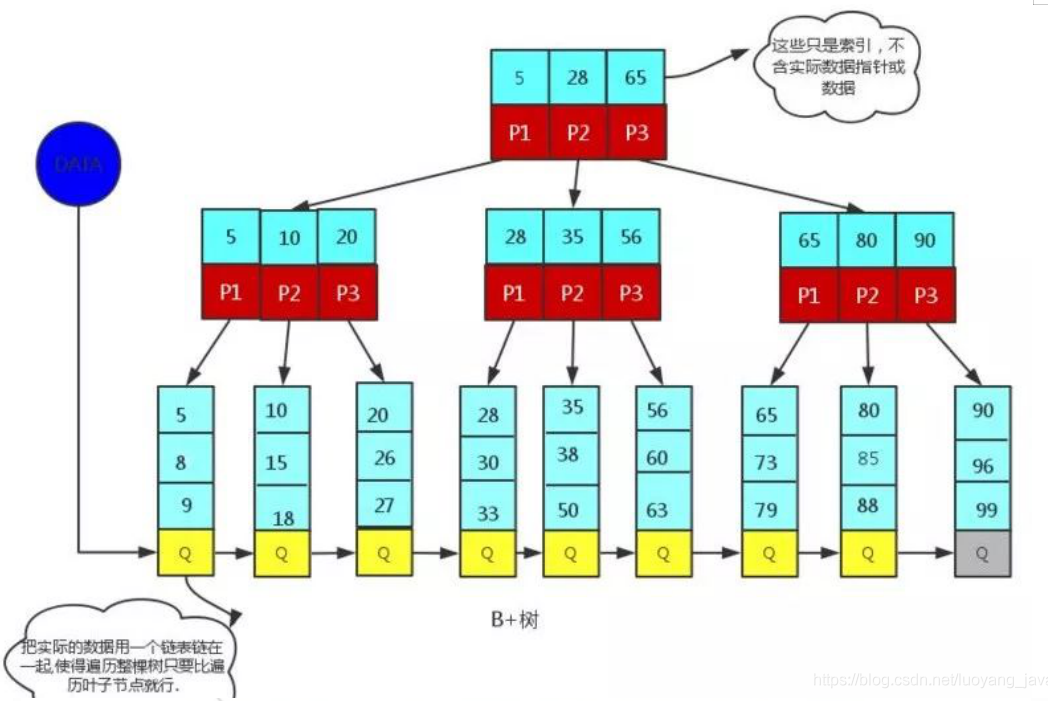 1、InnoDB存储引擎的最小存储单元是页,页可以用于存放数据也可以用于存放键值+指针,在B+树中叶子节点存放数据,非叶子节点存放键值+指针。