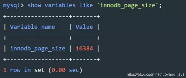 在MySQL中我们的InnoDB页的大小默认是16k,当然也可以通过参数设置: